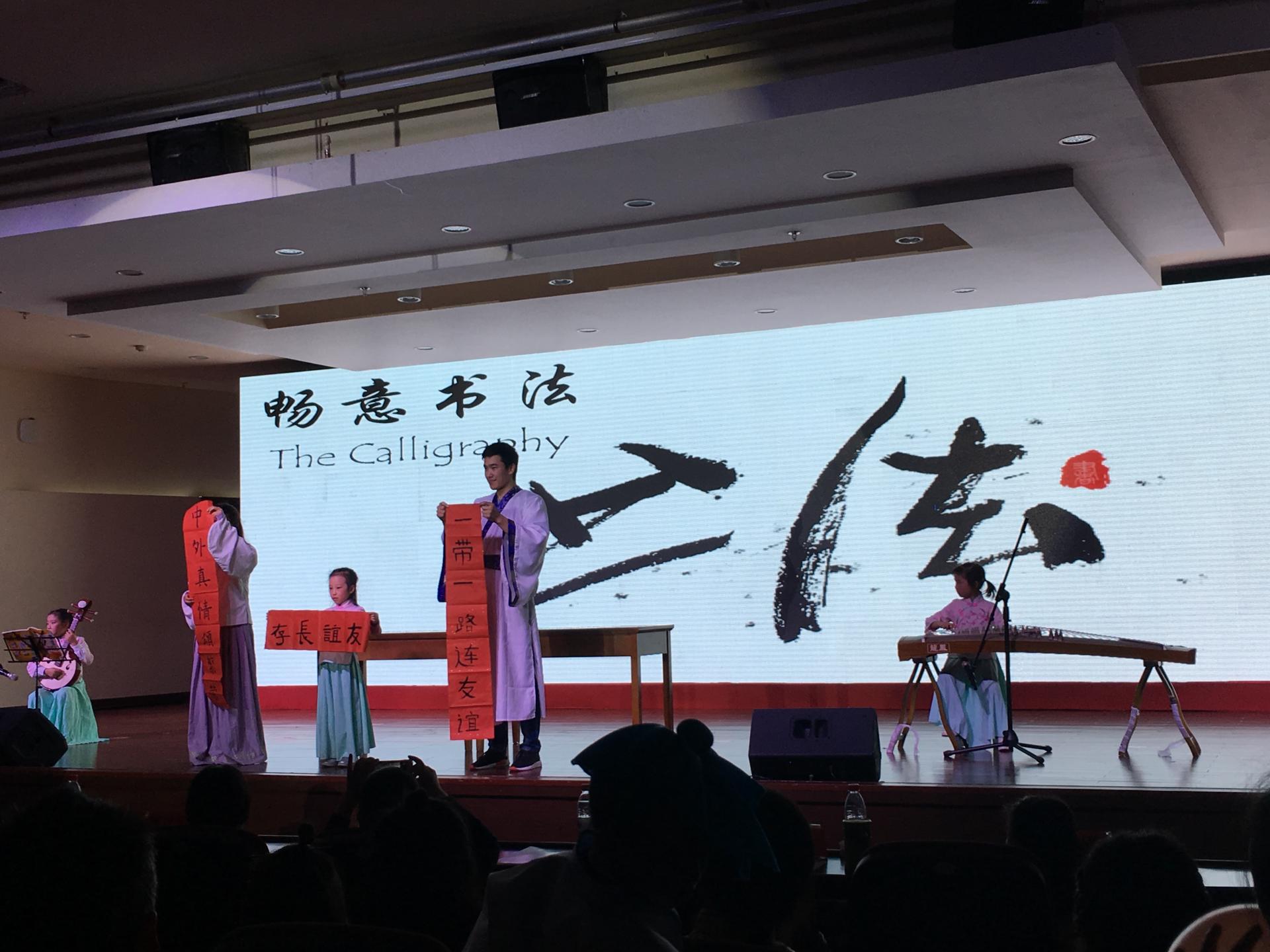 一段古典唯美的汉舞《礼仪之邦》、一首热情似火的Hip-hop拉开了本次交流节的序幕。中外学生中国传统服饰走秀,演绎着传统服饰的时代变迁,旗袍之典雅、汉服之古朴、唐装之飘逸,留学生穿上这些传统服饰又加入了不少时尚和艺术气息。诗经朗诵展示了中国古代礼仪文明渊远流长;多民族传统乐器表演,音乐多元文化荟萃;中外学生畅意书法,翩若惊鸿,婉若游龙;《音乐之声》西方经典音乐剧,美妙动听、赏心悦目;多语联唱《友谊地久天长》,更是把现场气氛推向了高潮。整场演出精彩纷呈,多语言多文化交流融合,为师生奉献了一场绝妙的视听盛宴。