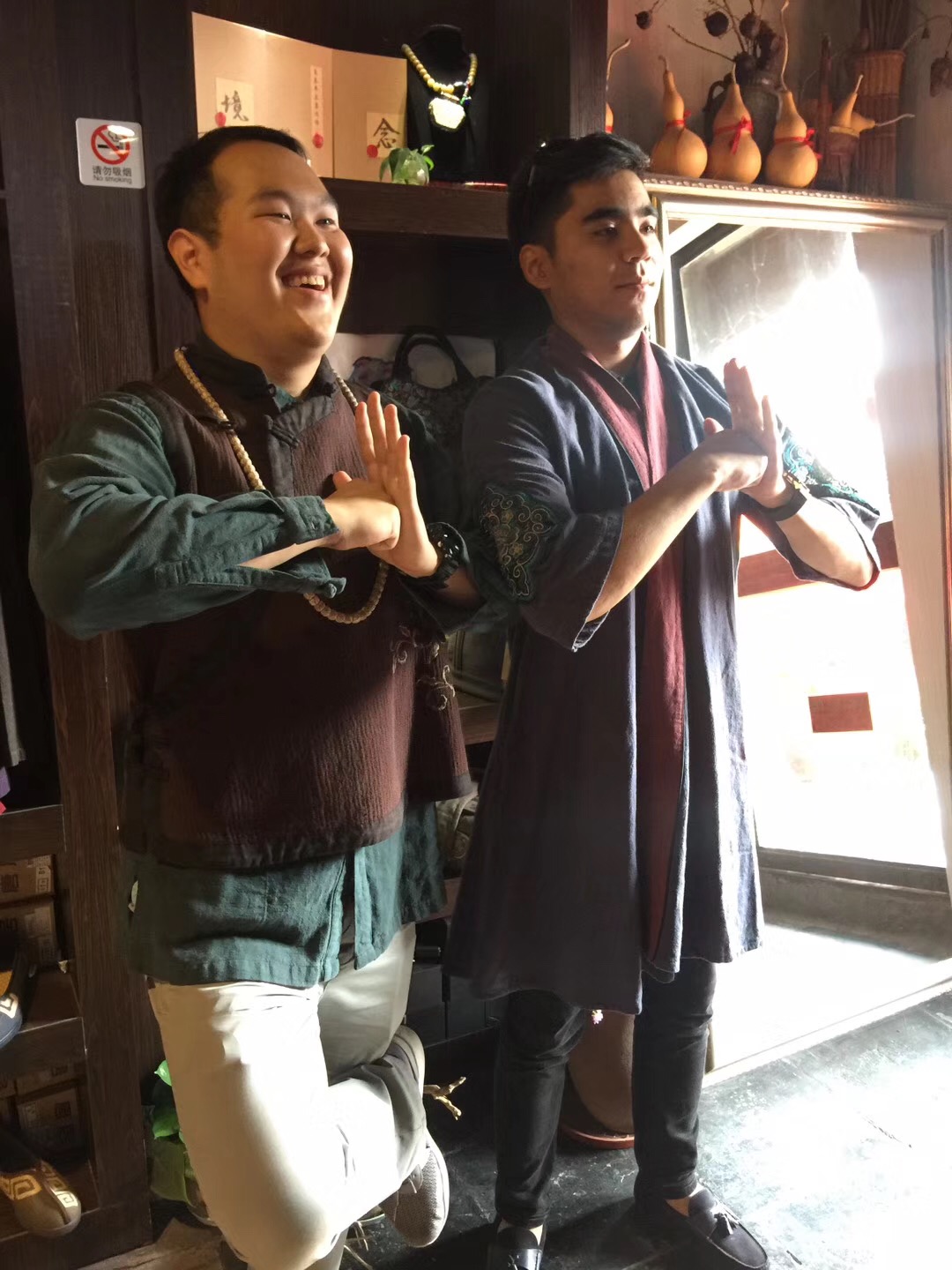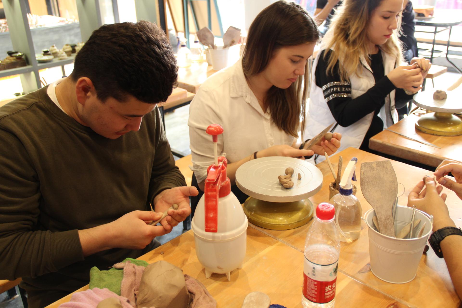 婚典仪式结束后,留学生们来到运河边,逛大兜路历史街区热闹的庙会,品小吃、尝美味,吹陶笛、捏陶泥,尽享民俗玩趣。他们还走进社区国际体验店,穿上唐装,摆起pose,纷纷说起了中国明星“成龙!李连杰!”。走进剑瓷视界,留学生们一边观看专业香道表演,一边品茗、闻香、赏瓷,交口称赞这样的活动“很好、很开心,very good,very nice!”。
