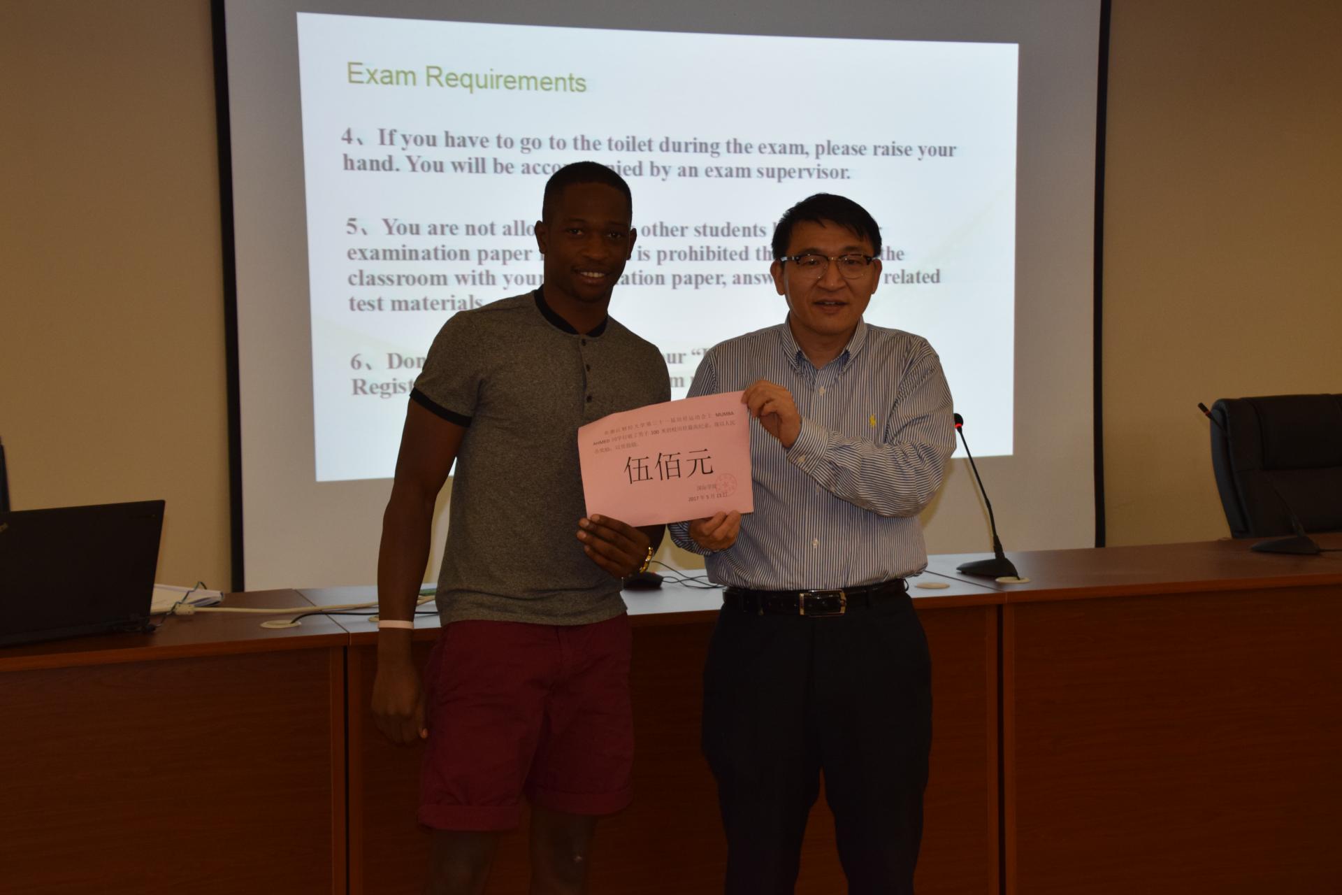 接下来,余慕鸿院长向同学们发表了讲话,强调了平时上课期间需要注意的事项,他鼓励留学生为了能在留学中国期间更好的生活和学习,积极学习汉语,积极参加校内活动。余院长还对上周参加校运动会的留学生进行了重点表扬,并向打破校记录的两名学生MUMBA AHMED和WILLIAMS JAMILLA颁发了奖状。