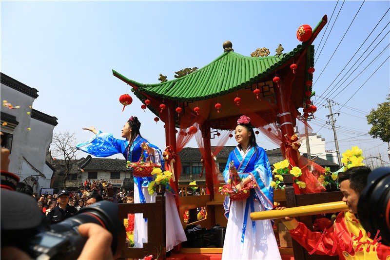 花轿巡游的现场人山人海,观众们摩肩接踵。巡游队伍展示了江南民族舞方队、非遗桑叶龙、秧歌队、喜迎丰收队、腰鼓队、上柏马灯队、木兰扇队、中国传统武术方队、金鹅老龙和骑游队等,让留学生们感受到了浓浓的传统文化节日气氛。蚕花姑娘沿途抛洒蚕花,寓意蚕农期待蚕桑生产丰收的心愿。围观的村民和游客们为了讨个好彩头争相接住蚕花,哈萨克斯坦的留学生KRAVETS ADELINA也开心地接住了一朵蚕花!