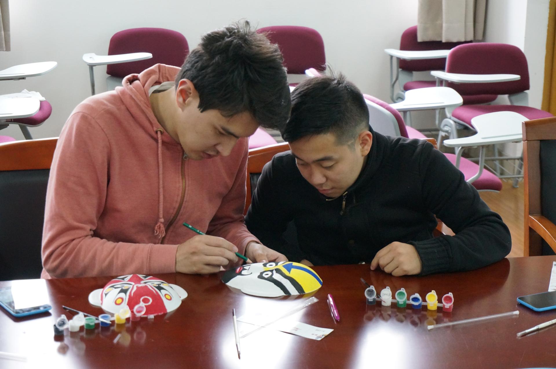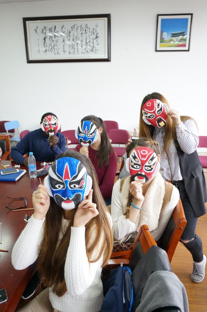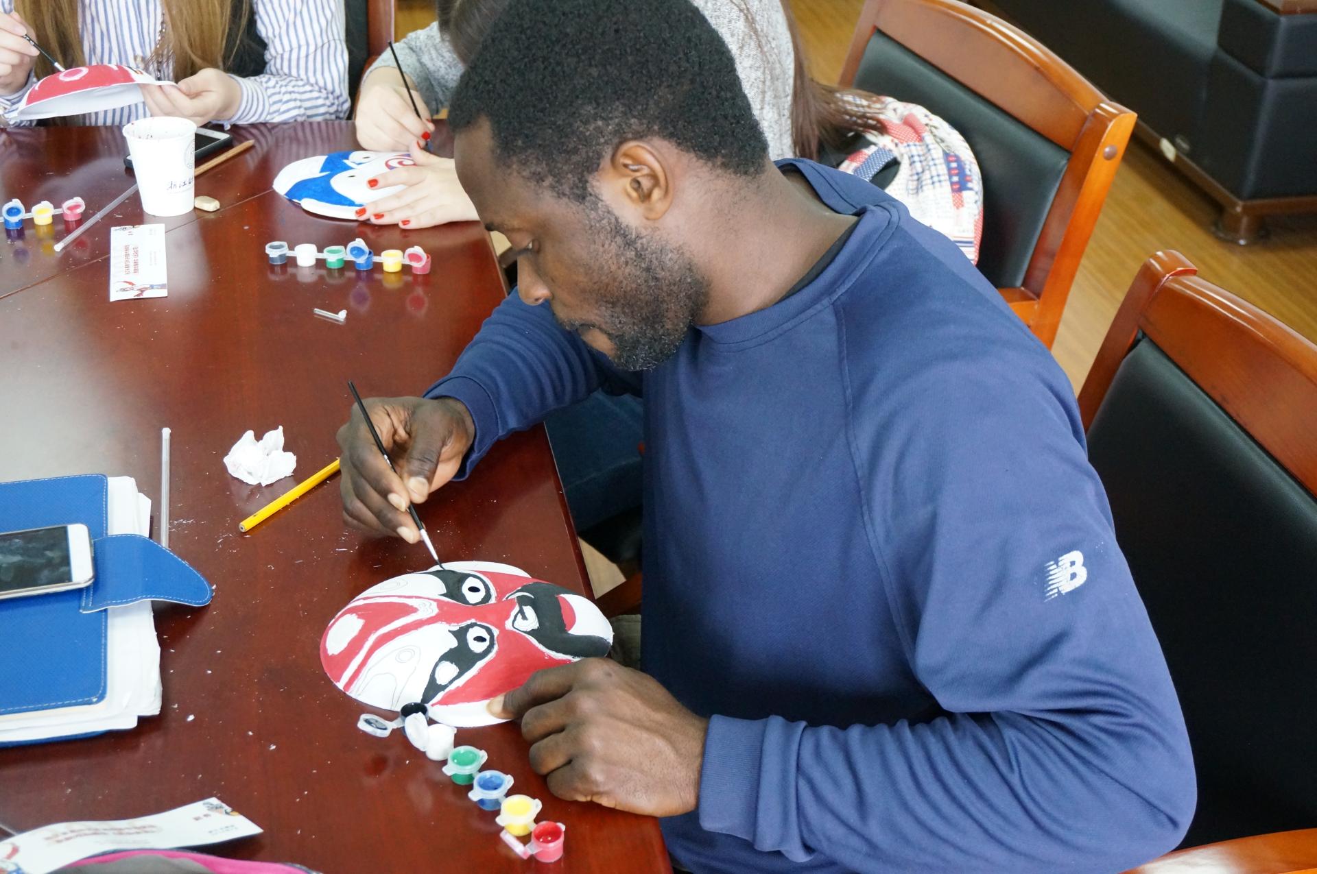 在8-105(西)会议室举办了一场别开生面的活动——教外国留学生学习京剧知识和学画京剧脸谱。
