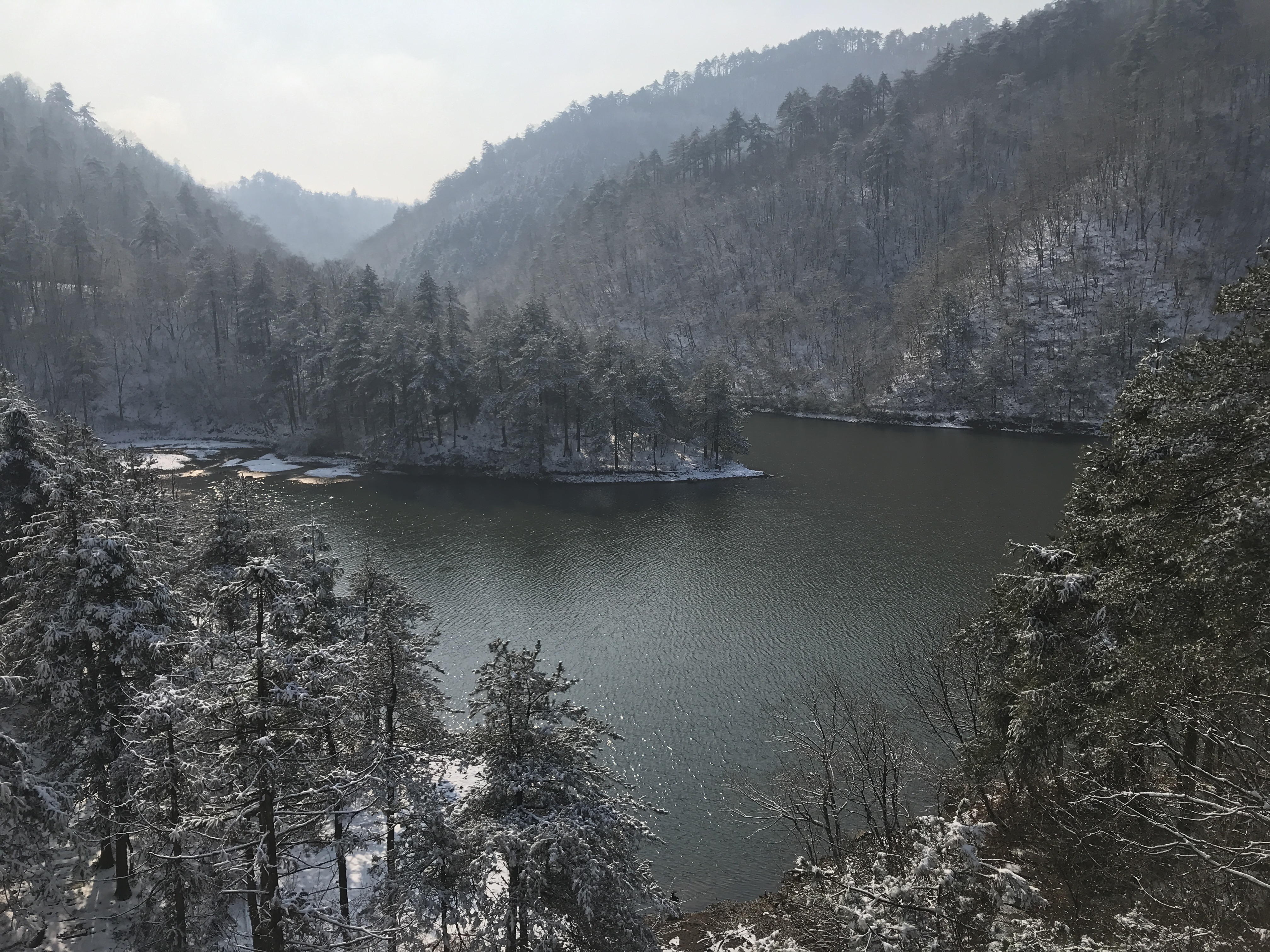 这个季节虽然已经感受不到大明山名闻遐迩的“一泓碧湖、百丈飞瀑、千亩草甸”,但是沿途风景依然美不胜收,山高谷深,层峦叠嶂,群峰耸立,还赶上了大明山的绝色雪景,雪后的大明湖水光潋滟,雪后的大明山银装素裹,分外妖娆。