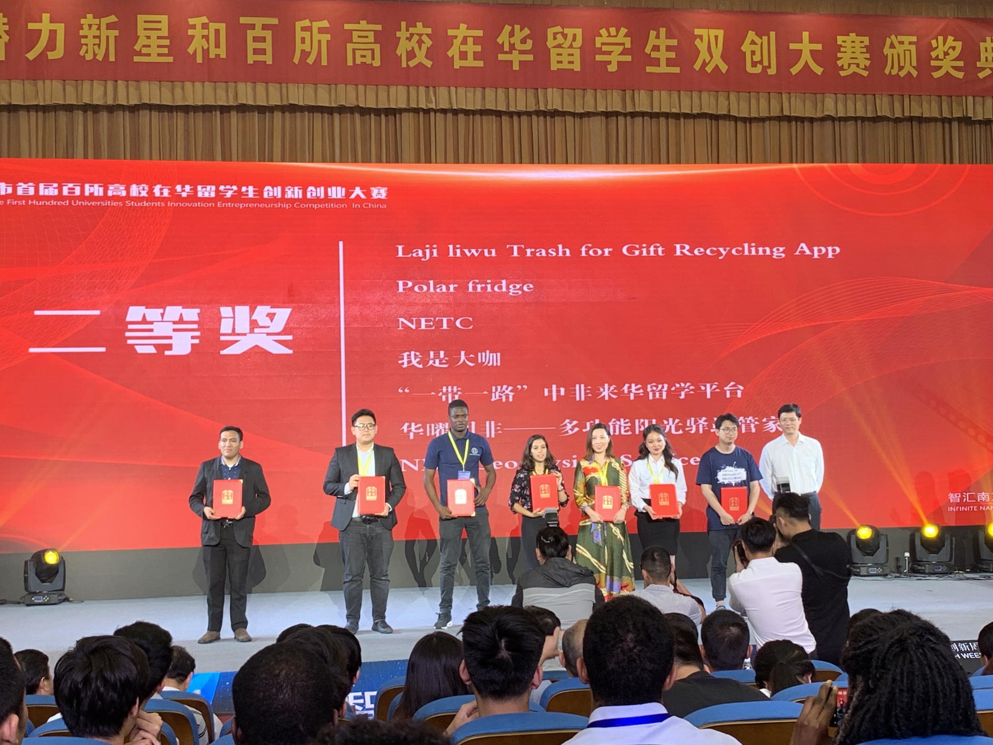 摩洛哥籍留学生EL KHATTABI BASMA和加纳籍留学生SUMUEL KOFI ANNOH MCCARTHY负责的“华曜明非—多功能阳光驿站管家”项目荣获大赛二等奖,乌兹别克斯坦籍留学生NORMIRZAEV SHOHRUH负责的“我的教练”项目荣获大赛三等奖,哈萨克斯坦籍留学生ZHALELOV ZHALGAS负责的“汉语连城”项目和乌克兰籍留学生POTOTSKA ANNA负责的“洋为中用”项目获得大赛优秀奖。