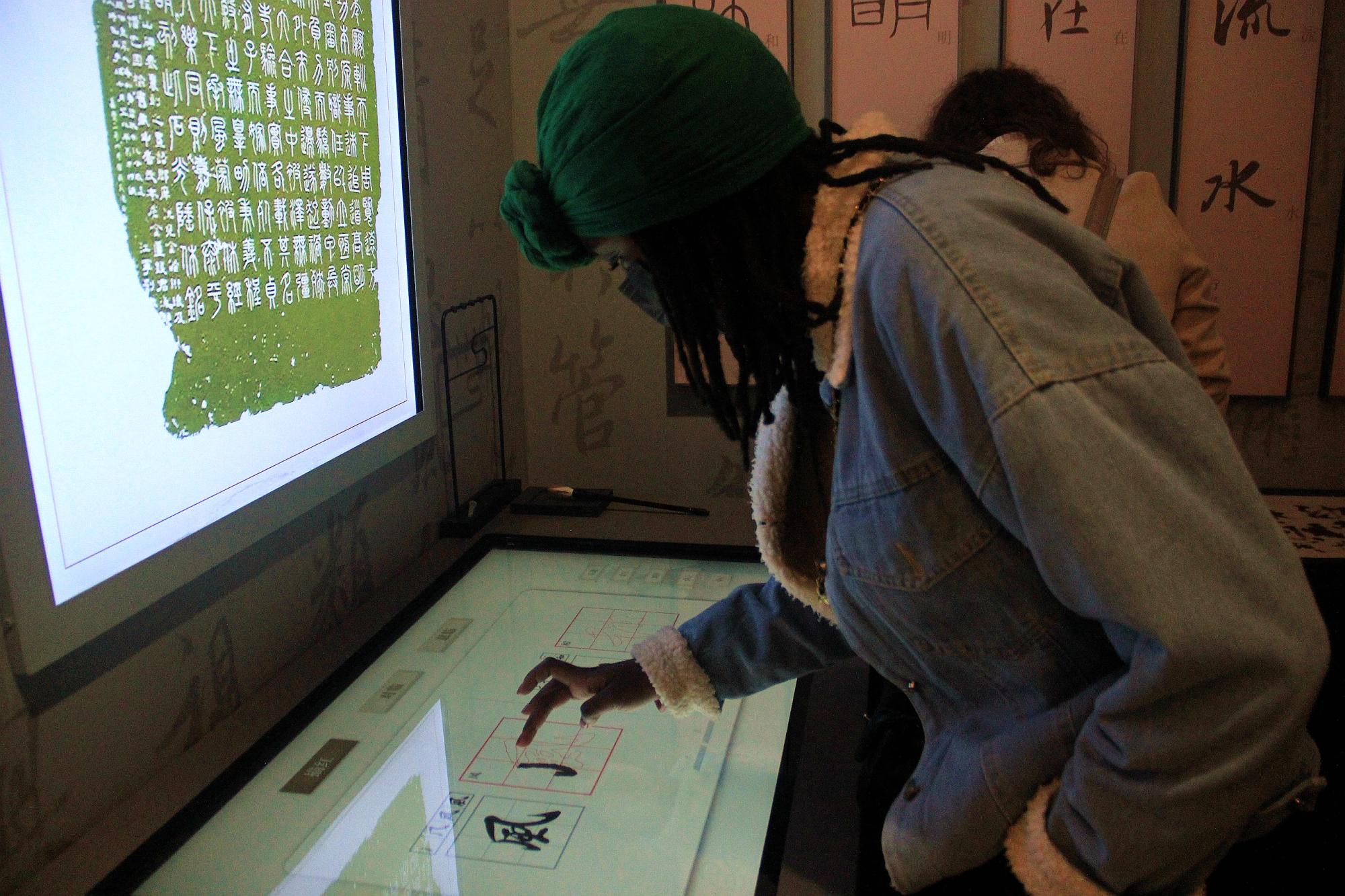 来自赞比亚女孩木槿表示“疫情后很少能出来,今天看到了老师经常会在课上提到的中国名人,感受到了宋韵文化,我十分陶醉于以‘数字版本+传统文化’形式展现的百家姓文化,中国文化真是多姿多彩。”俄罗斯女孩海琳开心地说“我喜欢大自然,也喜欢青瓷,这个展馆曲径环绕,处处皆景,通过老师现场讲解,我们学习很开心。我打算回去后把自己的名字刻在石头上,这种感觉很棒!”