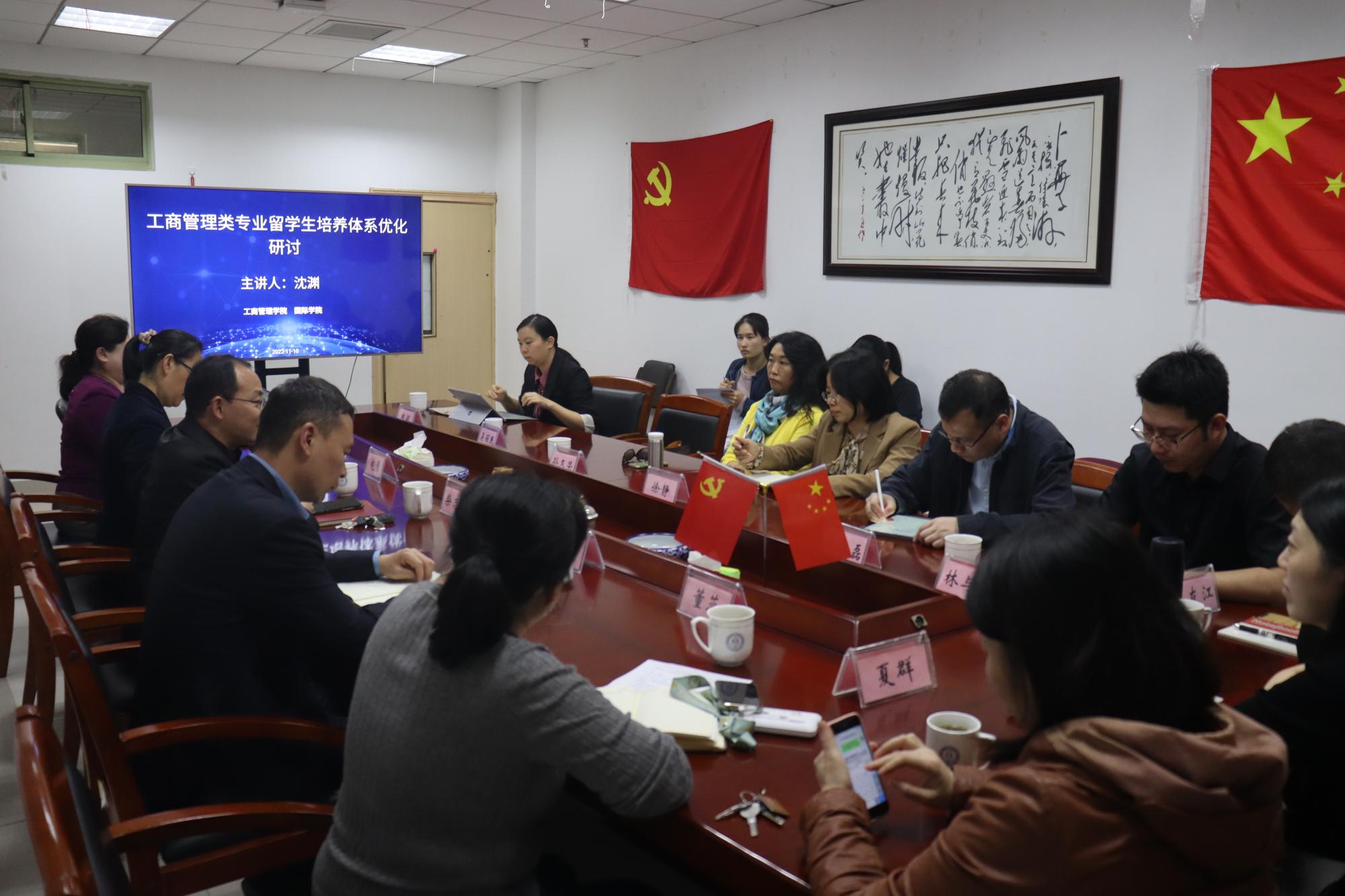 11月10日下午,工商管理学院沈渊教授、陈颖副教授、吴丽民副教授应邀来我院开展题为“工商管理类专业留学生培养体系优化研讨”专题讲座。我院院长柴志贤、副院长赵倩、工商管理学院副院长张雷、工商管理类专业留学生任课等20余位老师参加了本次交流活动。