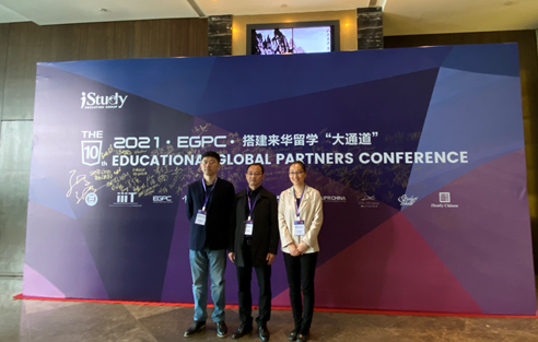 近日,学院应邀组织人员赴南京参加EGPC来华留学生高层论坛暨全球涉外教育合作伙伴会议。副院长柴志贤、院长助理赵倩、招生主管任夫元参加本次论坛。