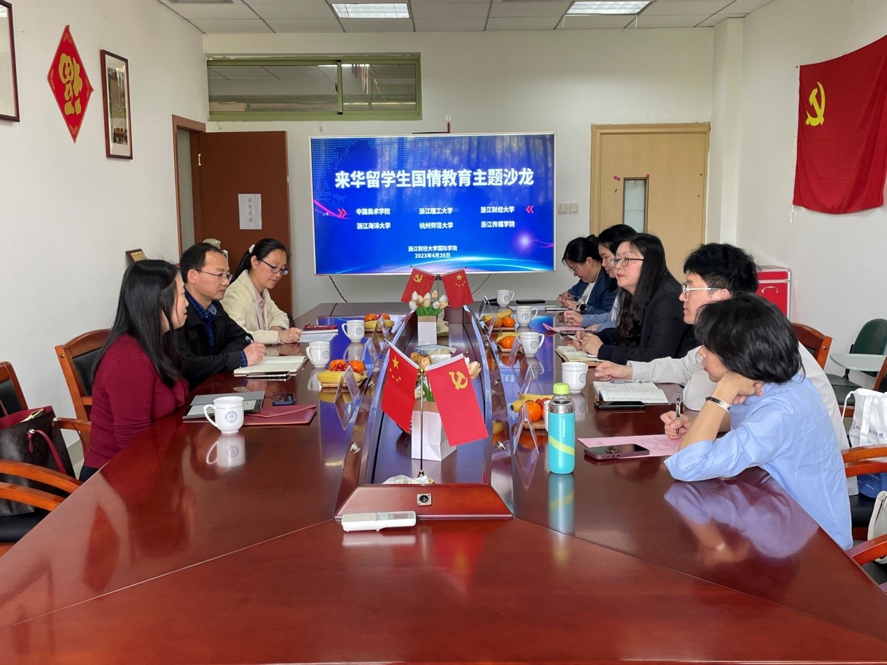 为讲好中国故事,传播好中国声音,4月27日,我院举行了来华留学生国情教育主题沙龙。来自中国美术学院、浙江理工大学、杭州师范大学、浙江海洋大学、浙江传媒学院、传播大脑科技有限公司等的领导与嘉宾齐聚一堂,共话来华留学生国情教育。