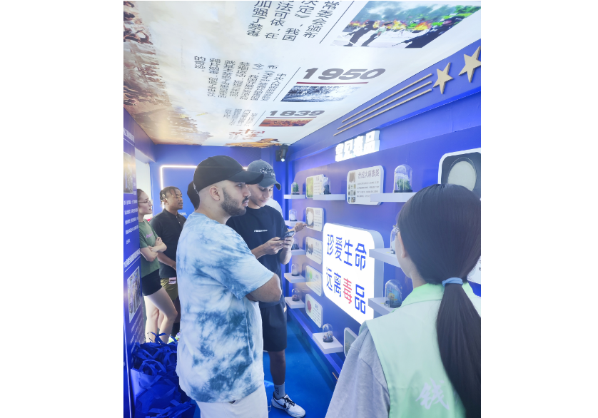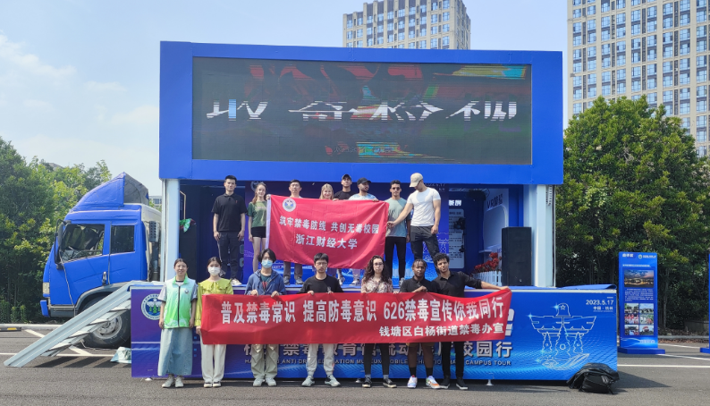 5月25日,为迎接6月26日的国际禁毒日,钱塘区白杨街道禁毒办在宝龙城市广场举办了626禁毒宣传日活动。我院应邀组织国际学生参与了本次活动。通过现场讲解,和部分毒品模型展示,国际学生既得到了禁毒方面的法制教育,又提高了防范意识,取得了十分良好效果。
