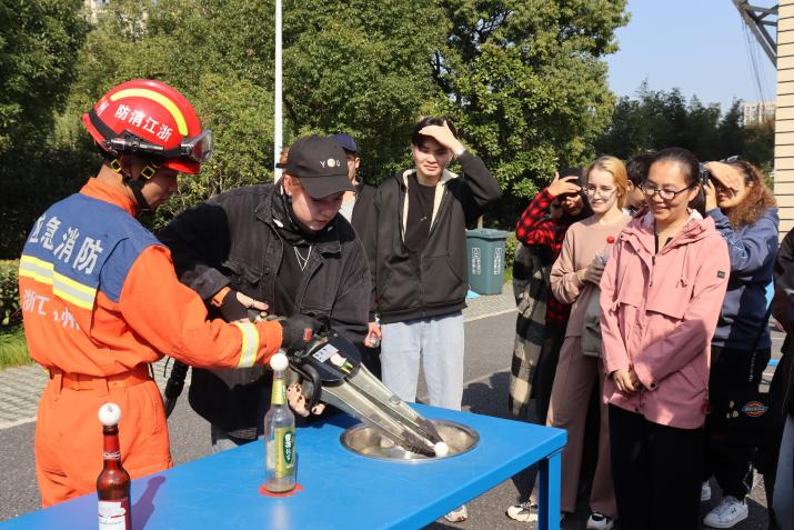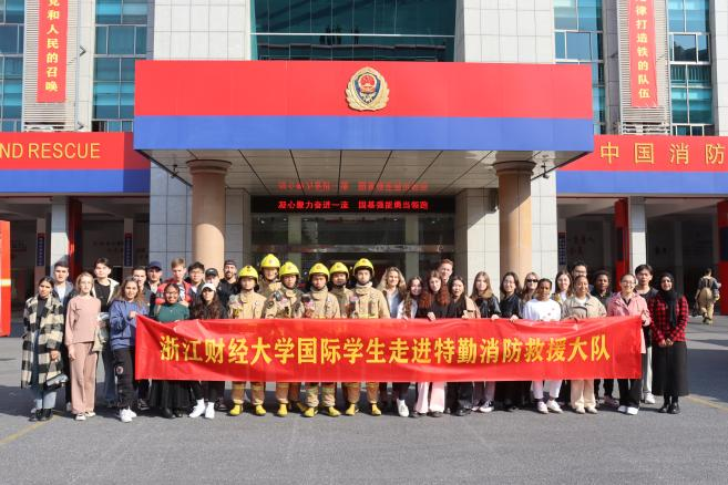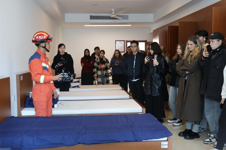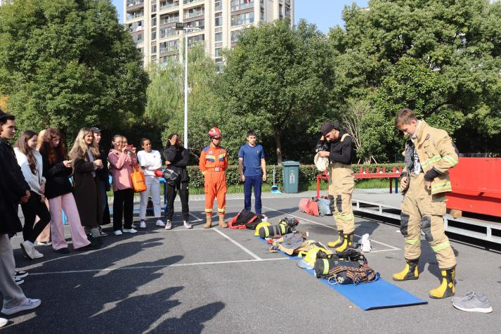 联合校保卫处,组织2023级国际学生新生走进杭州市特勤消防救援大队,“沉浸式”学习消防安全知识,接受消防安全教育。来自俄罗斯、摩洛哥、哈萨克斯坦等国的30余名国际学生参与了此次活动。