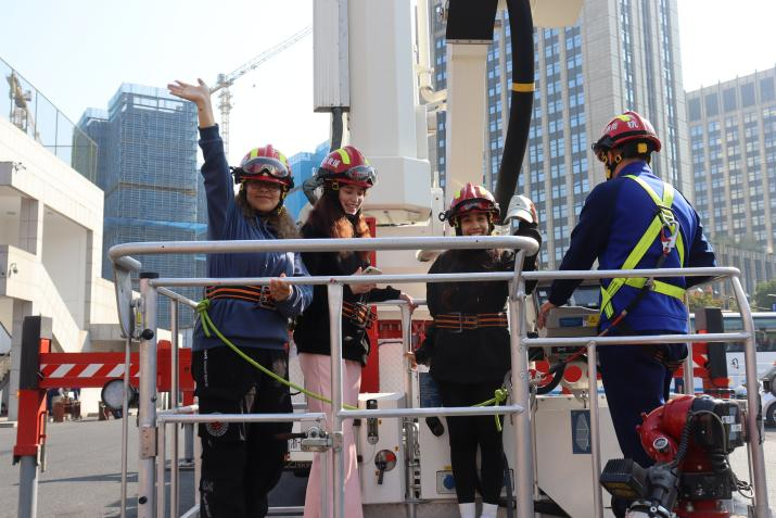 随后,消防官兵带领同学们参观了训练场所和内务卫生,并邀请同学们体验快速穿着消防服、操作消防液压钳,乘坐消防云梯等活动,着实让大家过了一把“消防员瘾”,更让在场的国际学生深刻认识到“消防安全无小事,消防安全在细节”。