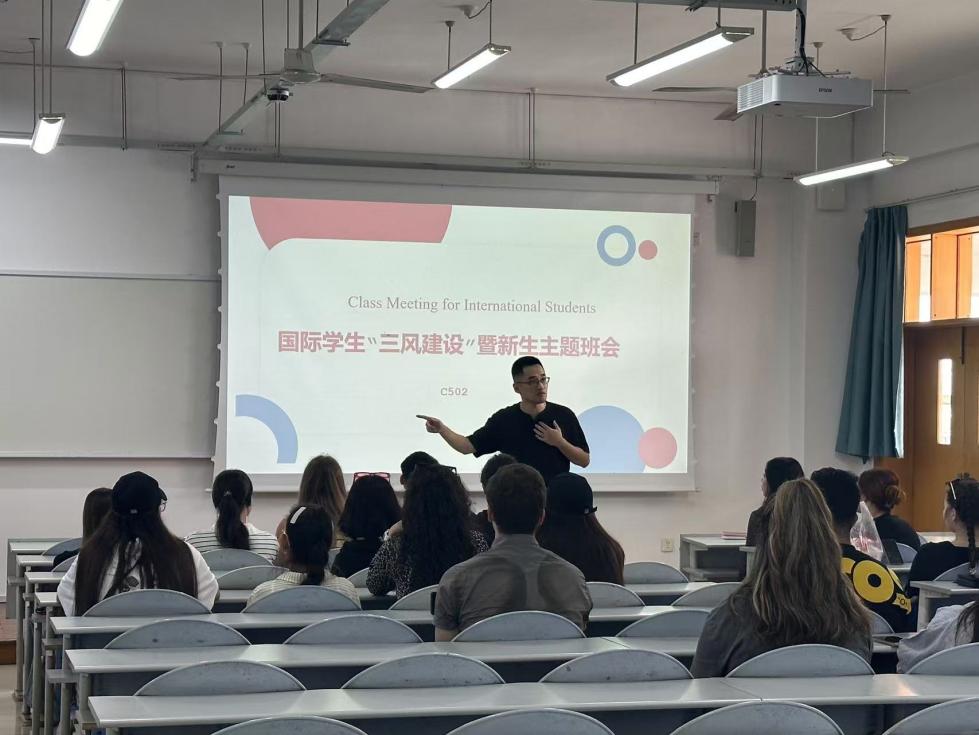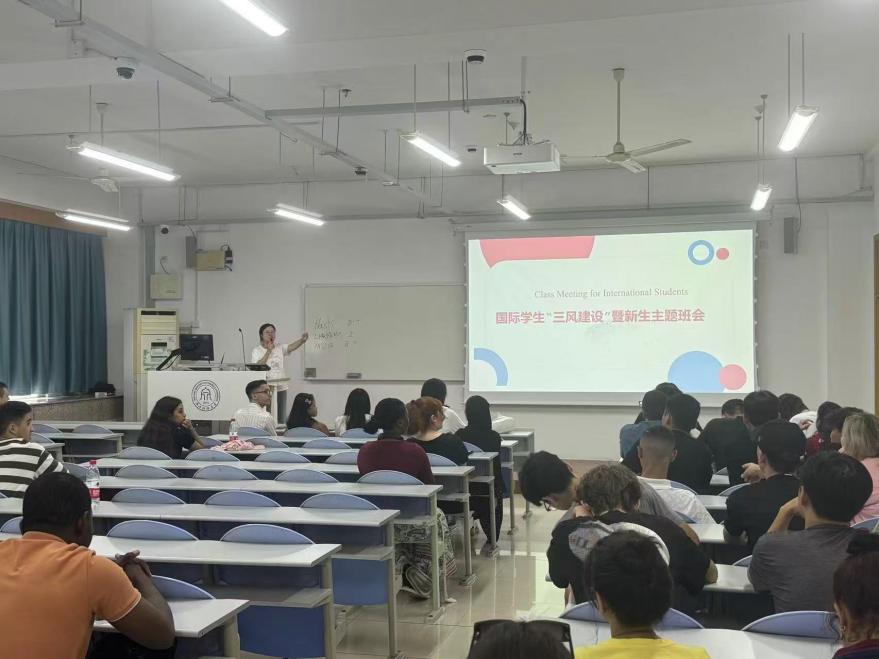 辅导员们详细讲解了“三风建设”的具体内容和要求,鼓励同学们要确立明确的学习目标,端正学习态度,掌握有效的学习方法,努力提升专业素养和国际竞争力。同时,辅导员还就如何合理安排学习时间、积极参与课堂交流、禁止手机进课堂、教材订购、考试诚信等与留学生们进行了讨论。