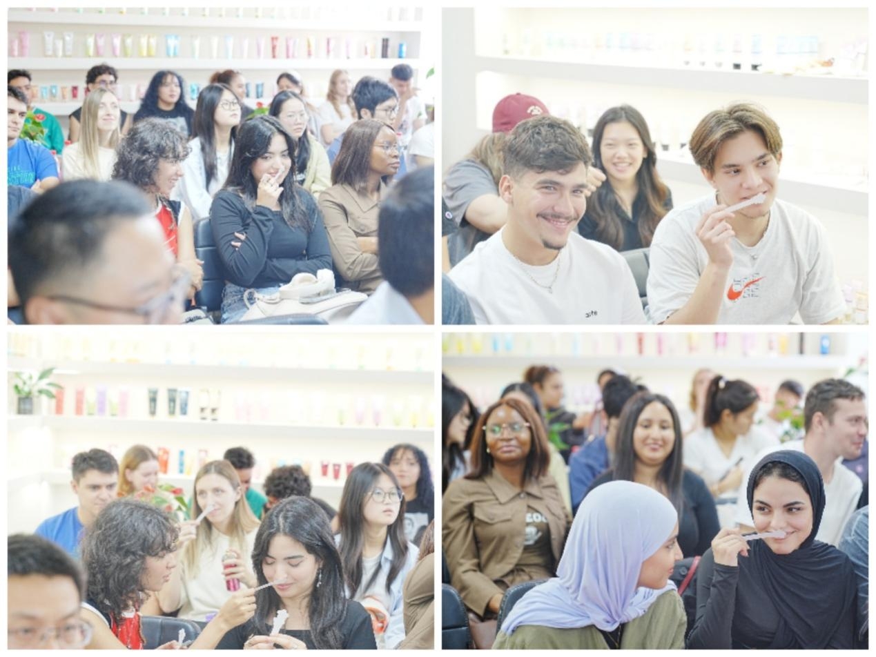 在美之源化妆品公司,孙云峰副总经理、王霞品牌总监为同学们介绍了美之源公司的发展状况,并试闻了公司出产的香水产品。美之源公司是亚洲领先的香水香氛制造企业,也是国家高新技术企业,其香水的最大生产能效达到每日50万瓶,拥有多个自主品牌,与全球知名品牌合作,产品销往全球96个国家和地区。其后,同学们参观了公司的包装车间,大家了解了产品价格、产品制造流程以及销售地等,惊叹于公司98%的产品销往全球各地。