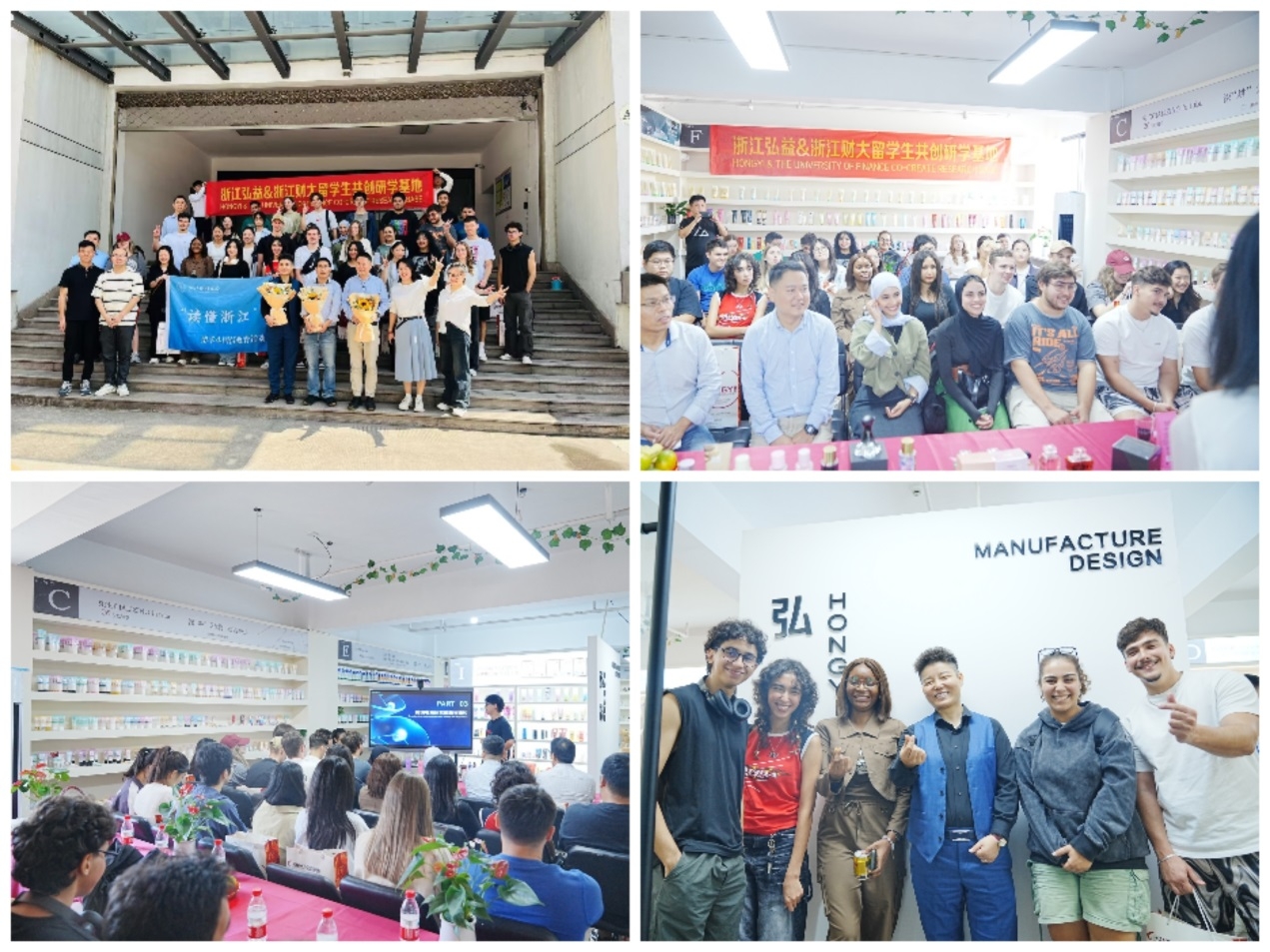 经济学院教师刘毅群、崔轩伟带队,5位国内本科生以及24位来自俄罗斯、摩洛哥、印度尼西亚、阿塞拜疆、尼日利亚等国的留学生参访了浙江弘益塑业公司、美之源化妆品公司和义乌国际商贸城。此次参访受到浙江弘益塑业公司总经理孙娟、美之源公司副总经理孙云峰、品牌总监王霞等企业领导的热情接待。