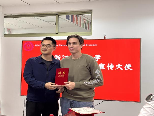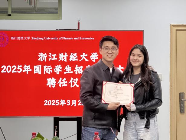 国际化办学战略的重要践行者,是连接学校与国际学生的文化桥梁。希望各位大使充分发挥语言优势、文化认同和朋辈影响力,以亲身经历讲好浙财故事,传播浙财办学特色,吸引更多同胞来校学习。