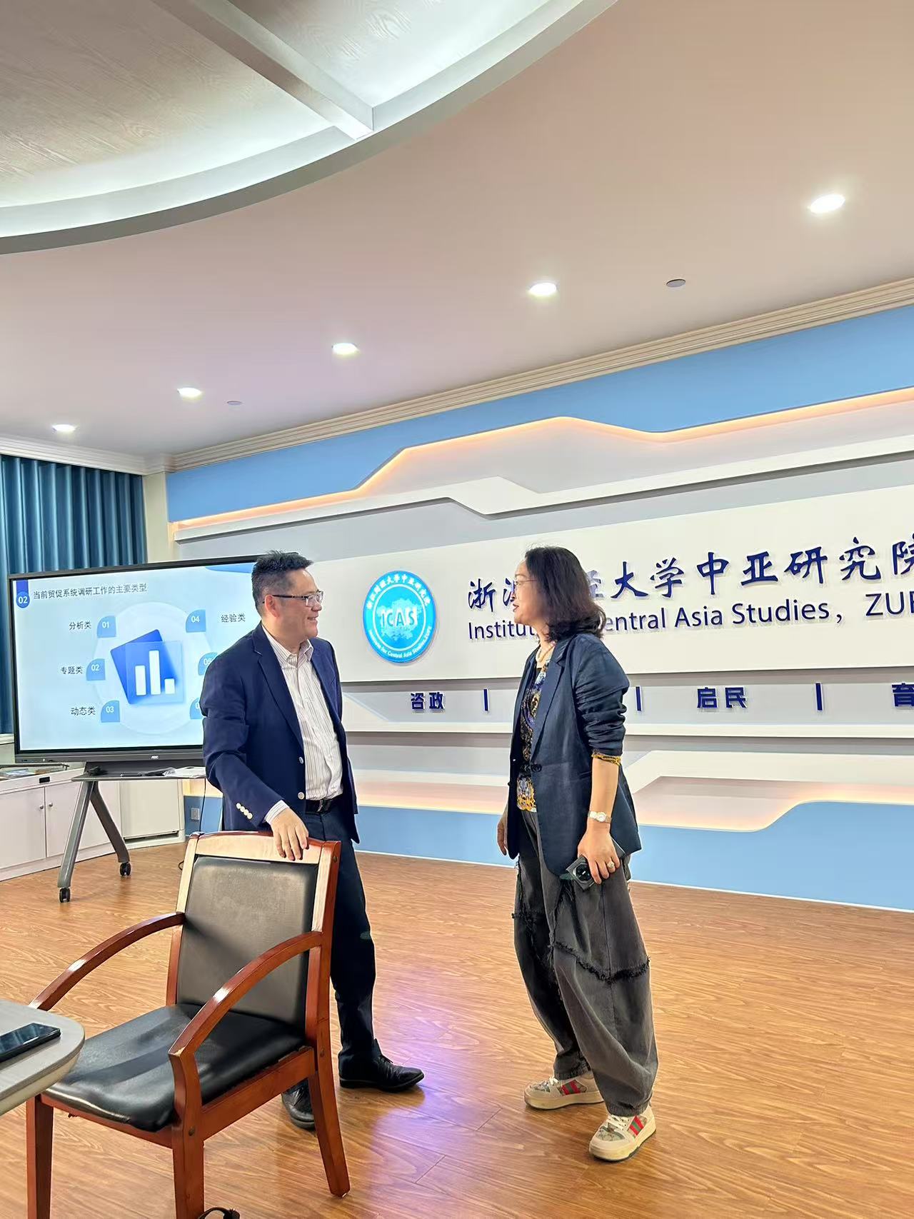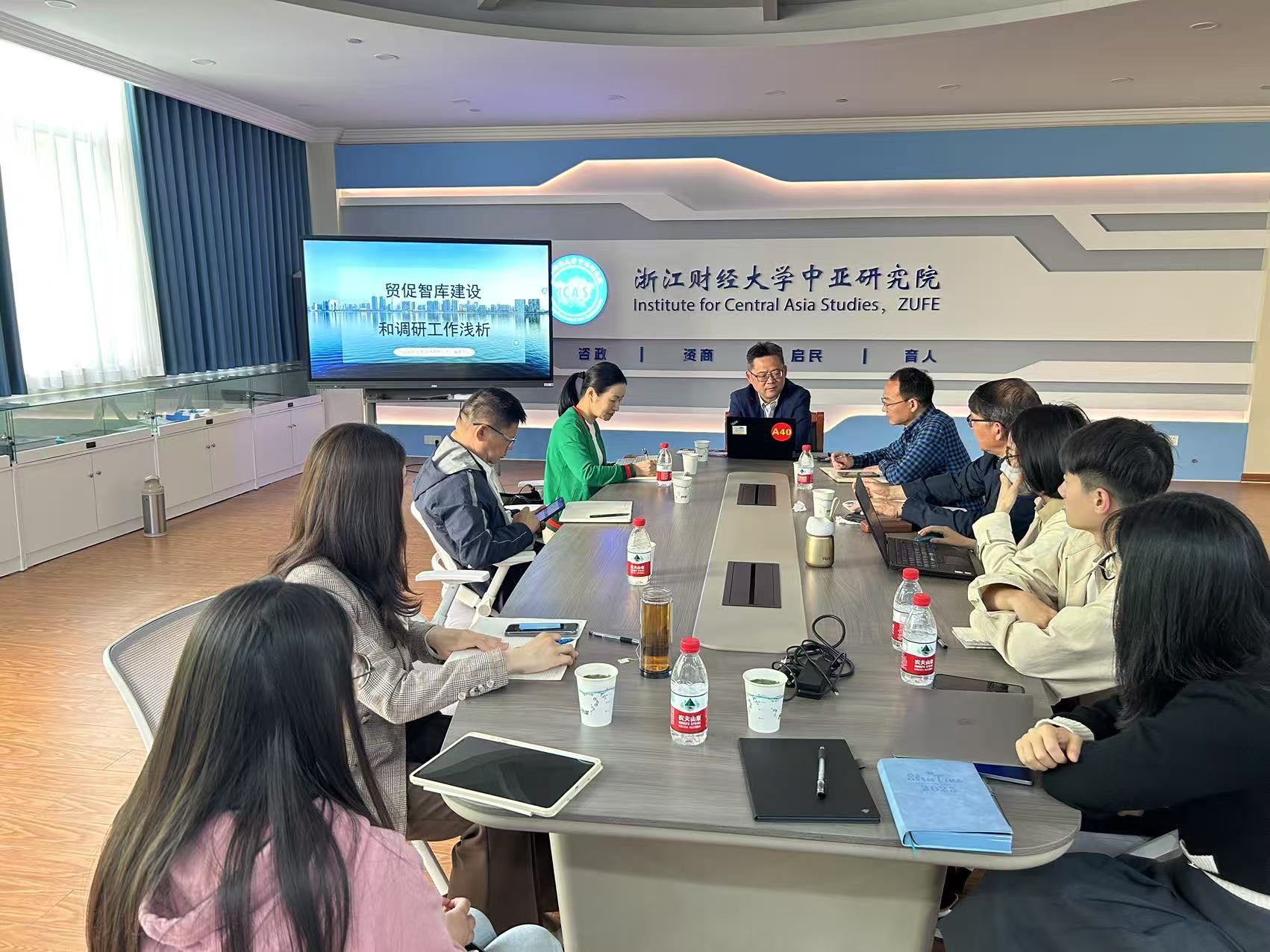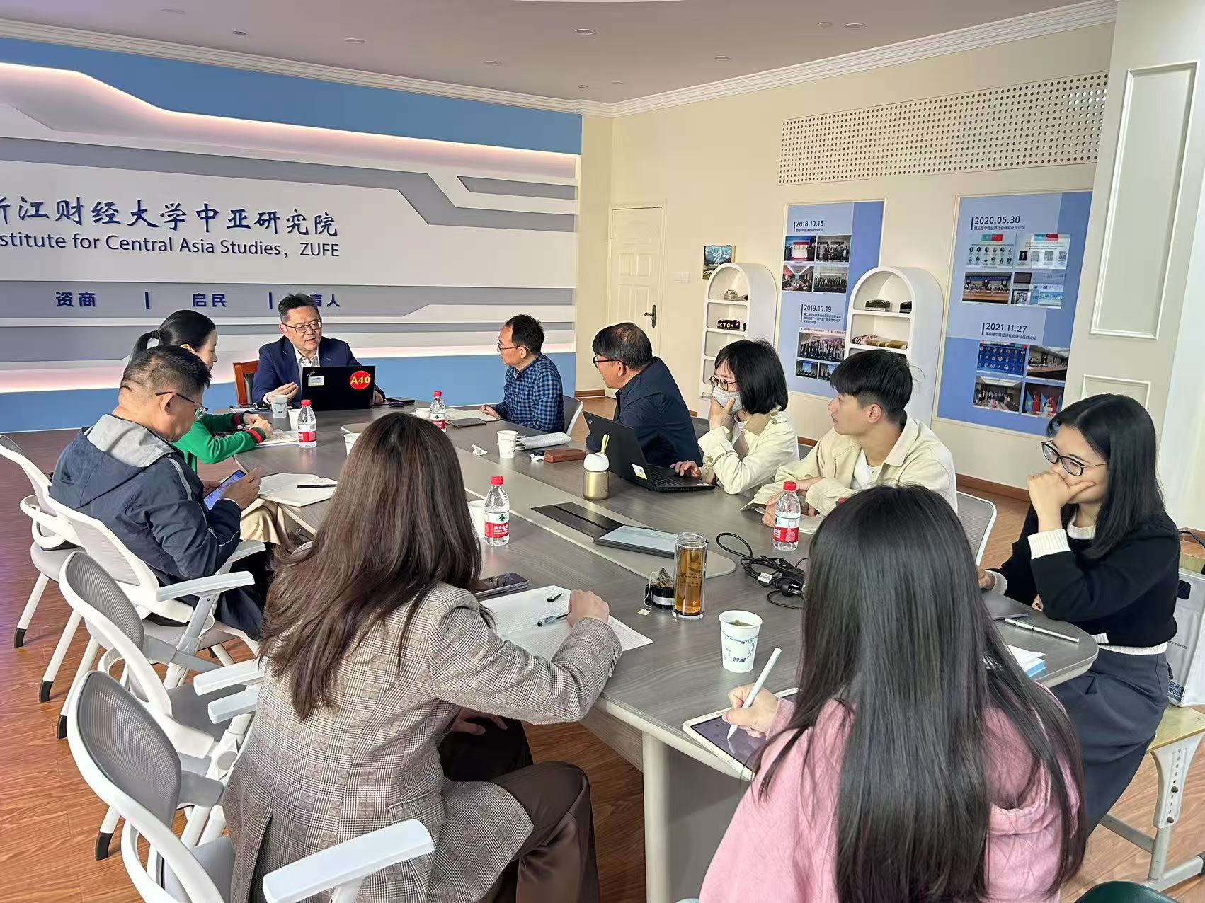 院长柴志贤主持,浙江省贸促会王芍丹部长、经济学院吴宏教授、中亚研究院院长余慕鸿及研究团队成员、博士生代表等参加。副校长郑亚莉进行了简短交流。