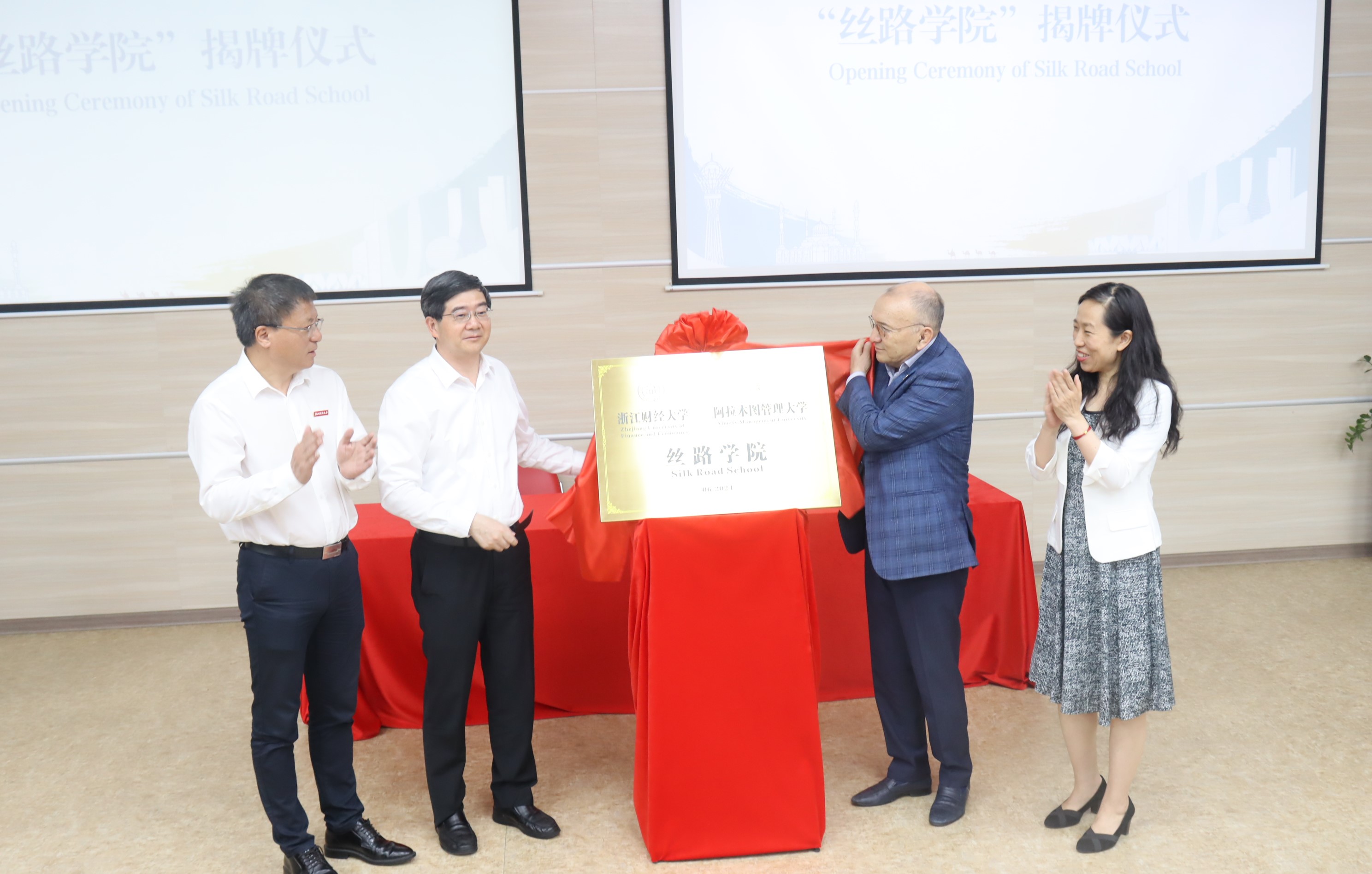 6月21日,学校与哈萨克斯坦阿拉木图管理大学合作共建“丝路学院”签约仪式在阿拉木图市举行。此次活动旨在贯彻落实高质量共建“一带一路”,促进浙哈教育合作、经贸往来与人文交流,服务浙江高水平对外开放发展新格局。