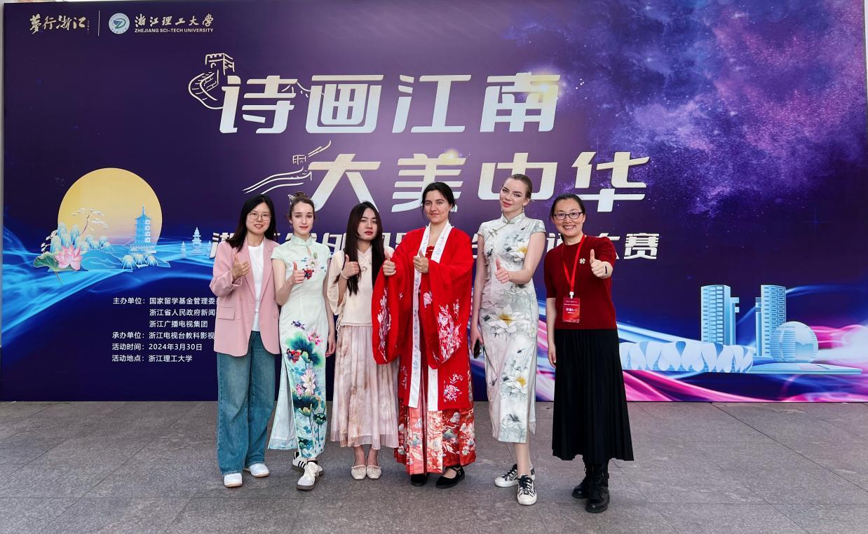 留学生共有3人闯进决赛,其中来自乌兹别克斯坦的ABRAMOVA ANNA(《雨巷》)获一等奖(指导老师:赵倩、魏阳阳),来自俄罗斯的BOGDANOVA TATIANA(《江南雨》)获三等奖(指导老师:魏阳阳、陈思涵),来自俄罗斯的DIVISENKO ANASTASIIA(《诗意中国》)获优秀奖(指导老师:赵倩、柴志贤)。