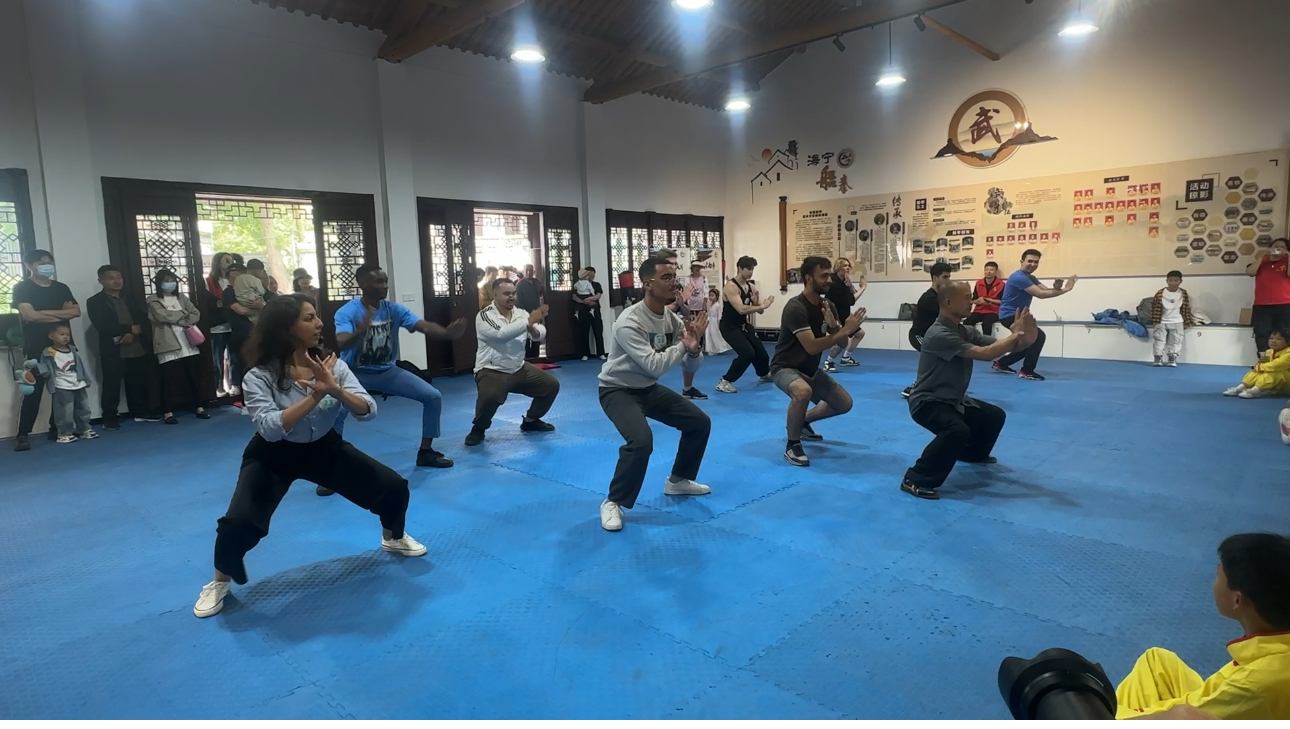 国家级非遗项目"海宁船拳"的第三代传承人吕晓荣现场教学,国际学生们认真学习每一个招式。船拳将武术与船文化完美结合,刚柔并济的动作中感受到中国传统武术的博大精深。