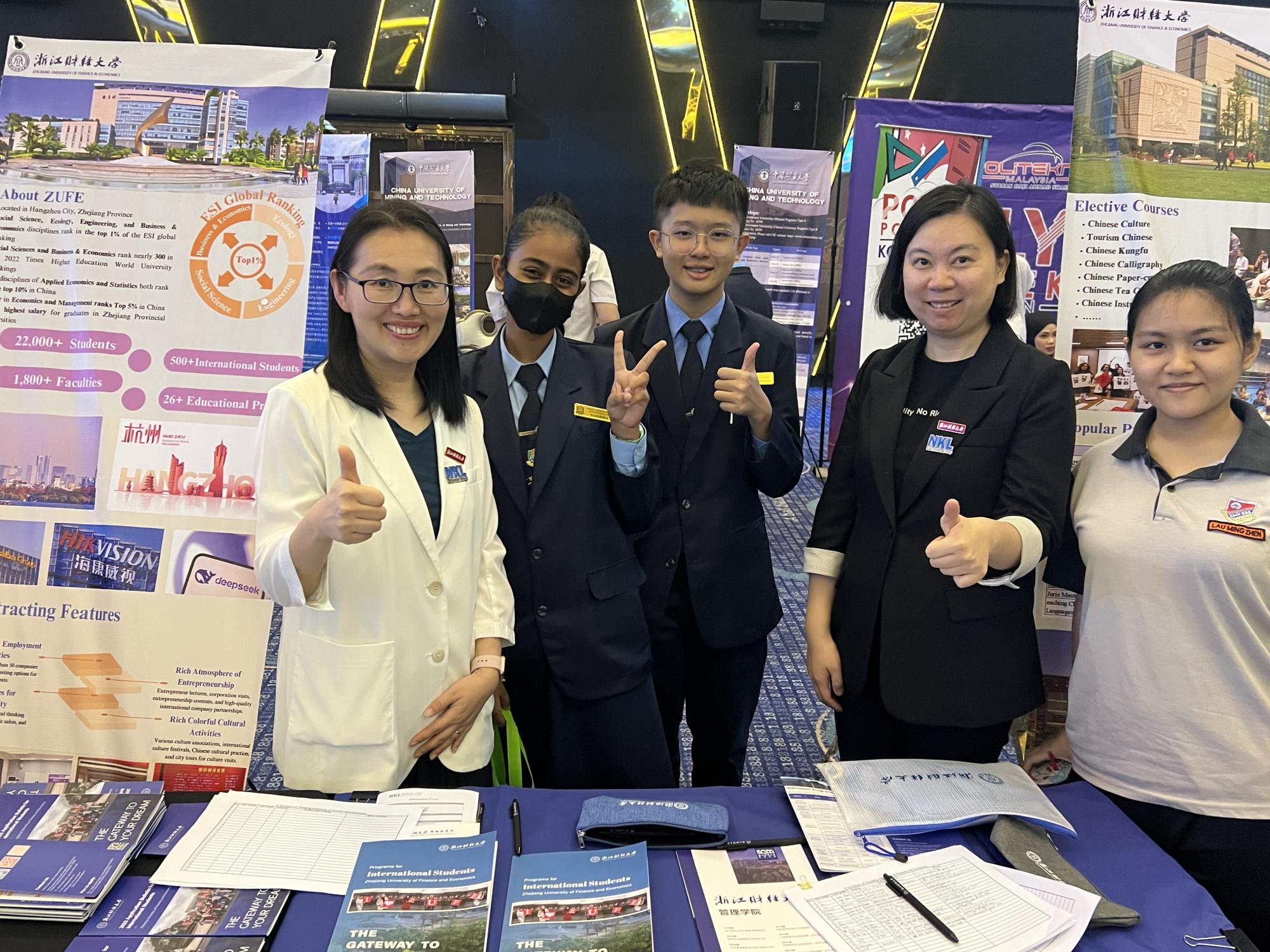陈颖、赵倩老师组成的专业团队在此次展会上精准对接,为马来西亚高中生提供个性化咨询服务。