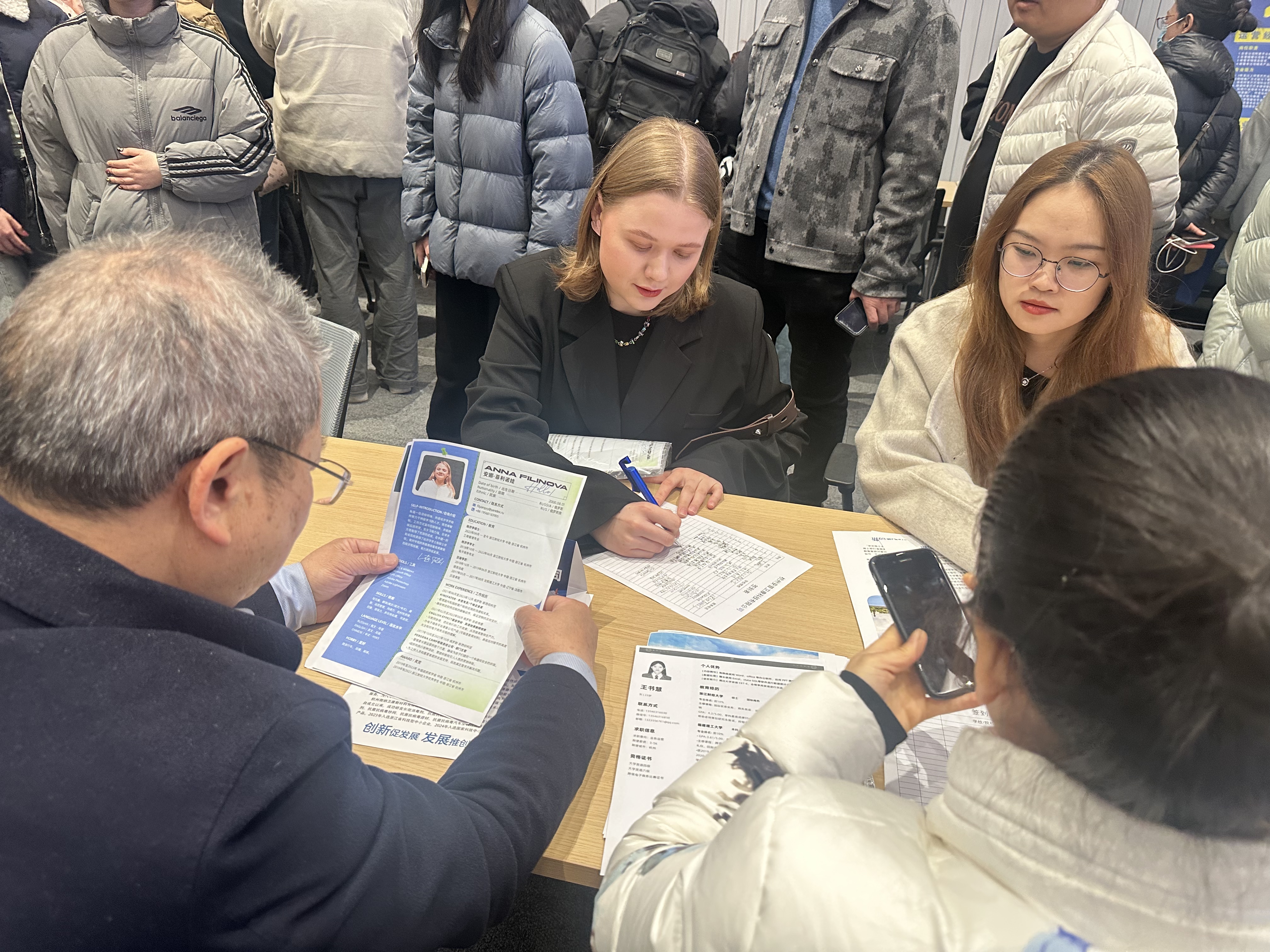 人才培养理念的有力诠释。留学生也表示通过此次活动,他们不仅深入了解了AI技术在跨境电商领域的前沿应用,还与行业内的专业人士进行了面对面的交流,极大地拓宽了自己的视野。招聘会现场,还有不少留学生与企业当场签订了实习协议。