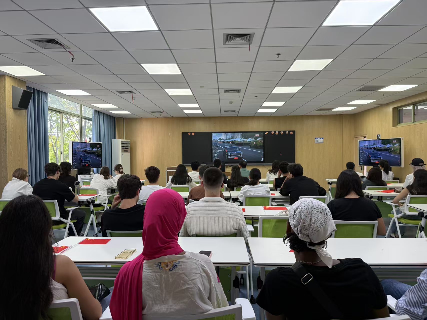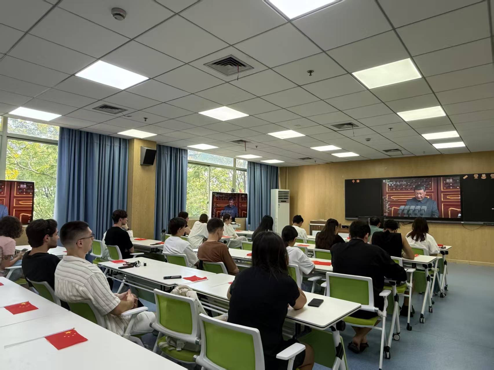 我院组织国际学生集中观看抗战胜利80周年阅兵仪式