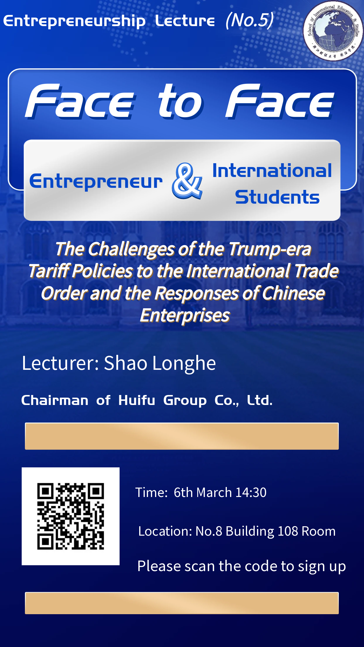 上一条:Entrepreneurship Lecture(No.5) The Challenges of the Trump-era Tariff Policies to the International Trade Order and the Responses of Chinese Enterprises