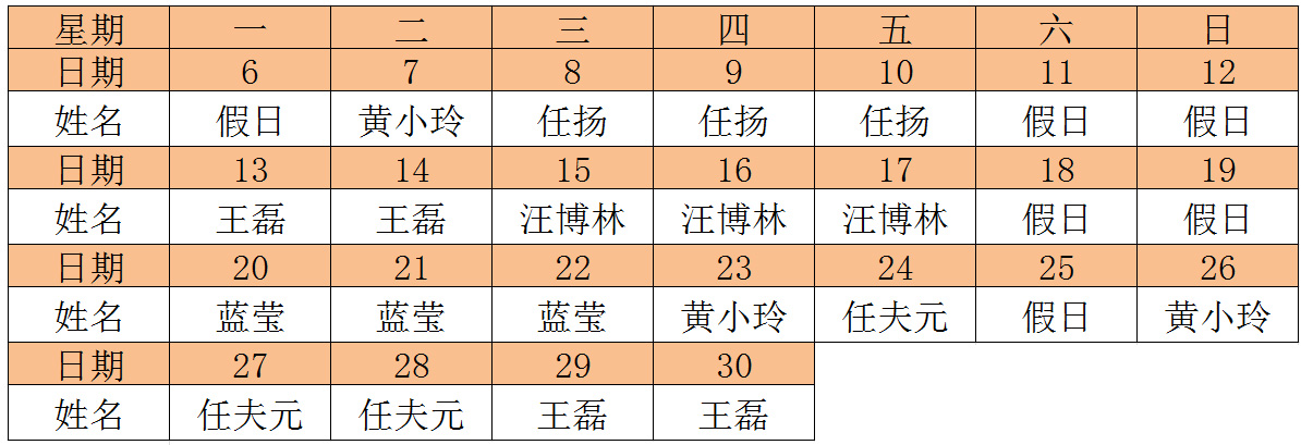 韩国漫画 管理服务岗位人员返校值班表(四月)