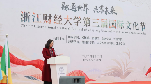 副校长郑亚莉在开幕式上致辞,她指出,国际文化节是推进国际化对外开放办学格局的重要一环,通过构建沉浸式的交流空间平台,不断拉近中外文化的距离。她希望同学们积极参与这场文化盛事,学会倾听不同的声音,理解不同的观点,共同构建一个和谐、开放、多元的校园环境。