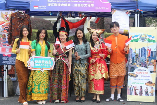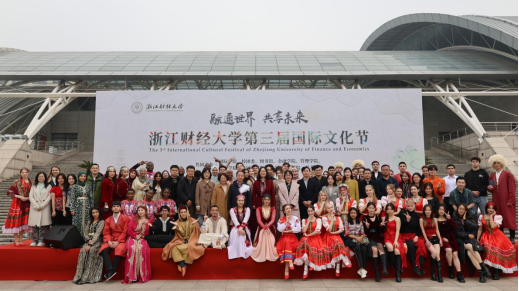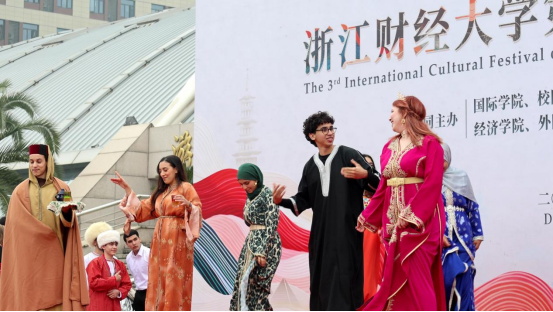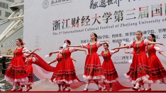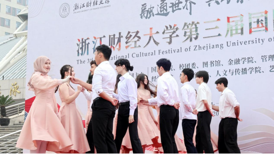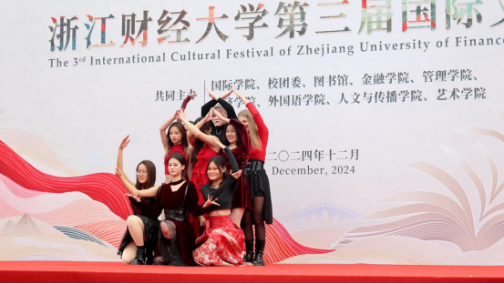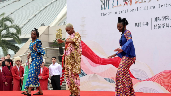 开幕式后,文艺汇演和文化展轮番精彩上演。同学们各显神通,多国服装秀、歌曲、舞蹈等表演轮番上阵:时而是东亚清越的弦音,时而是非洲热情四射的舞步,时而又是草原静谧夜空下的低吟……才华横溢的浙财学子用自己的方式展现世界各国文化的魅力。