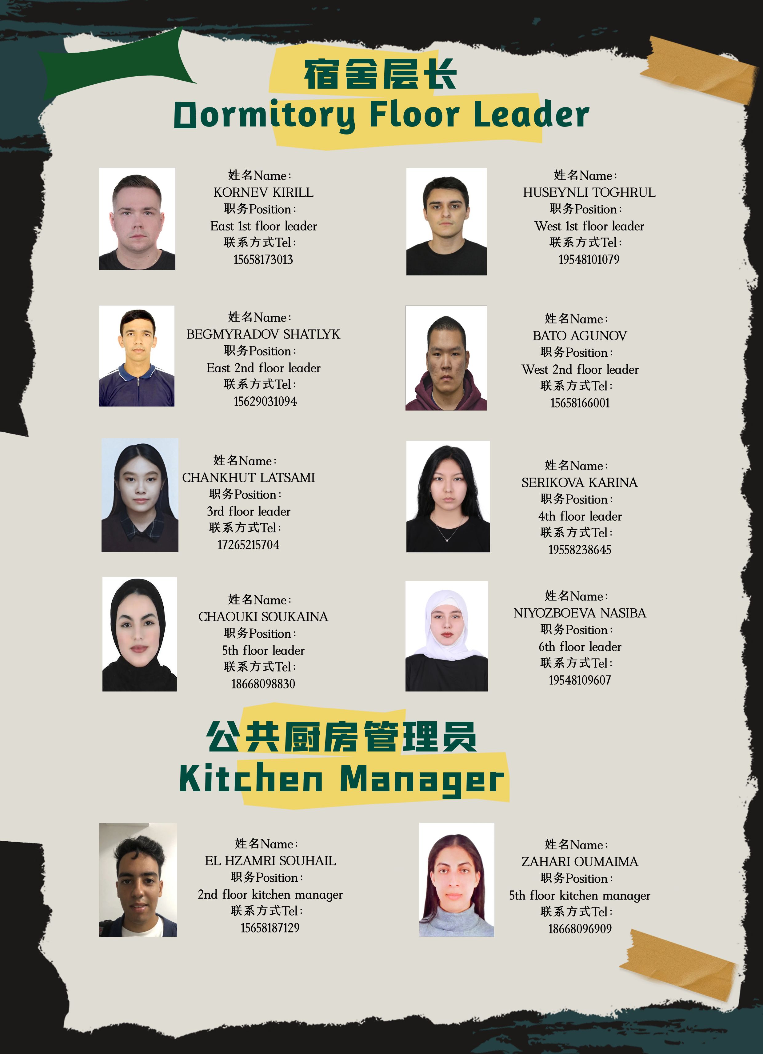 为贯彻落实学校学生管理、服务工作要求,进一步加强国际学生“一站式”社区网格化管理建设,实现国际学生宿舍自我管理和自我服务,现将2024-2025学年国际学生宿舍楼层长名单公布如下: